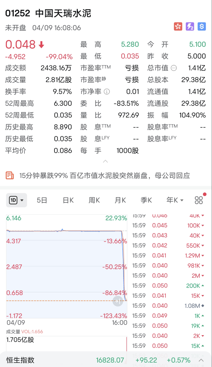 港股HK01252崩盘,股价从5.28垂直下降到0.048。