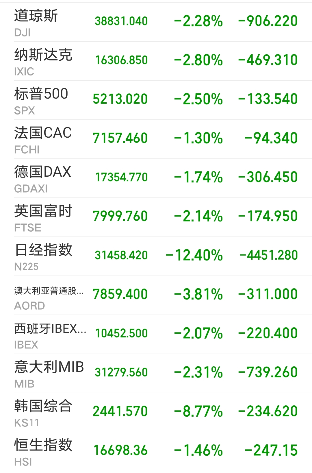 2024年8月5日,星期一,发生了全球范围内的股灾,特别是日本和韩国的股票市场。