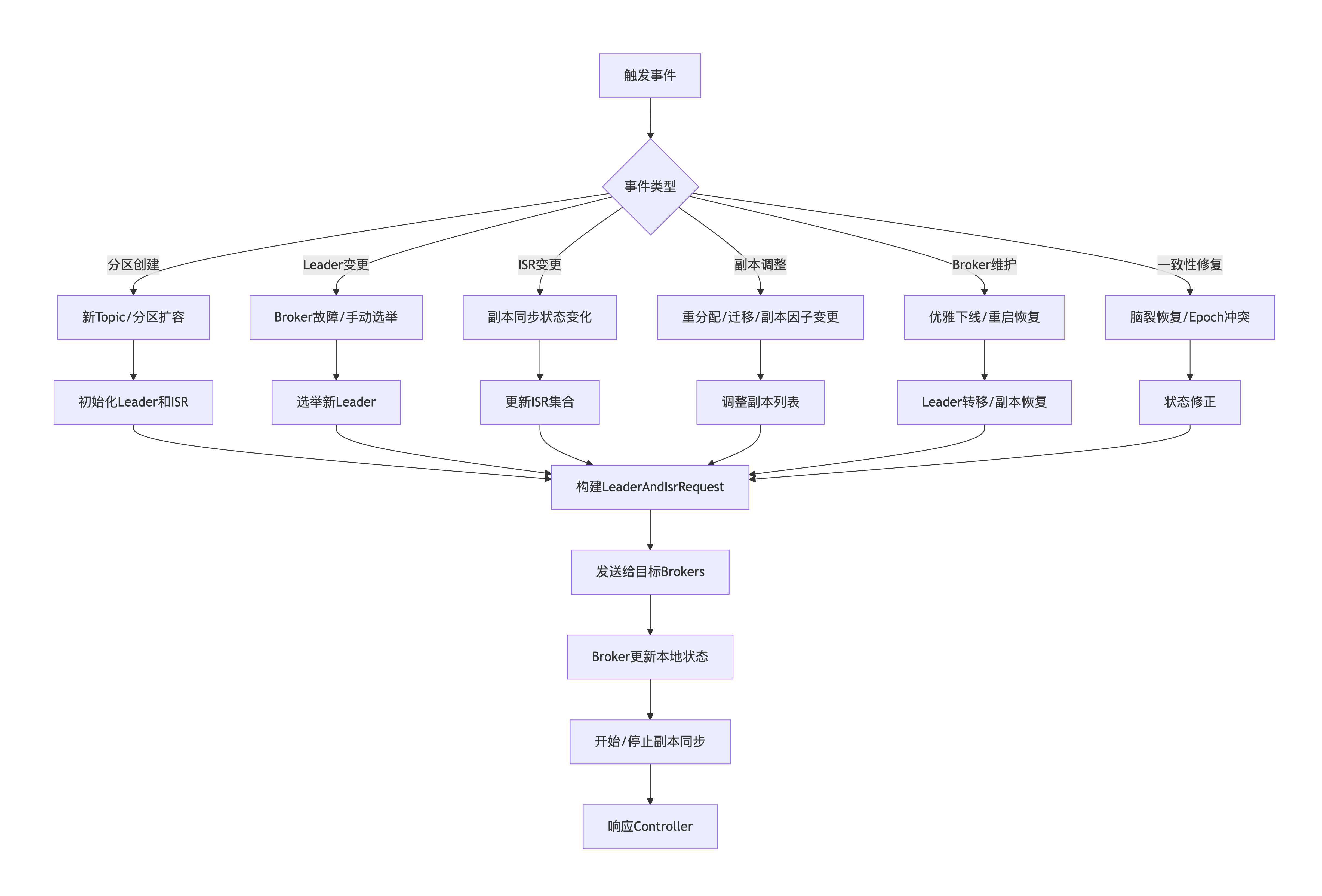 LeaderAndIsrRequest请求的触发场景如下图所示: