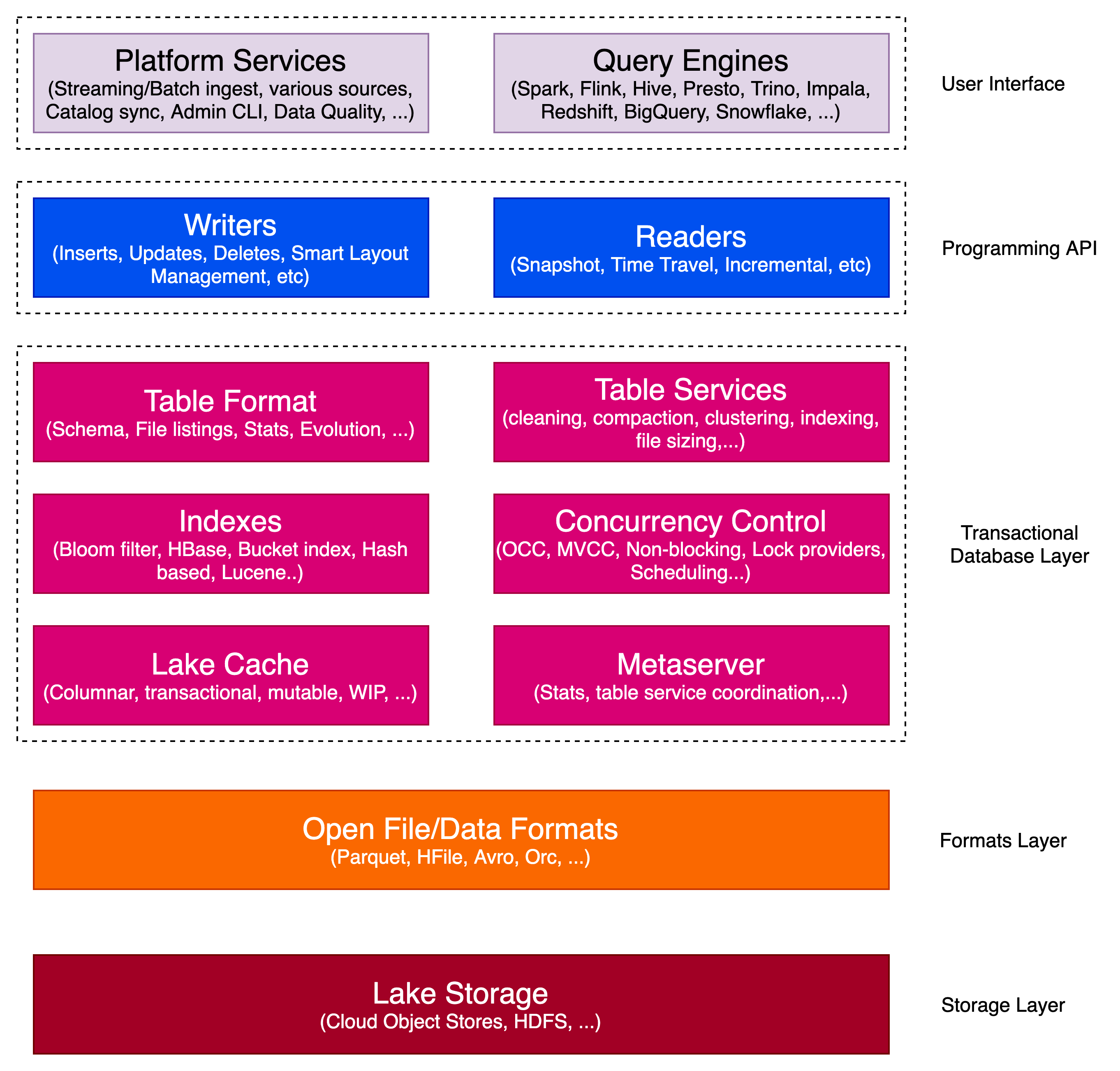 Hudi 的核心定义了一种表格式,用于组织存储系统内的数据和元数据文件,从而实现 ACID 事务、高效索引和增量处理等功能。