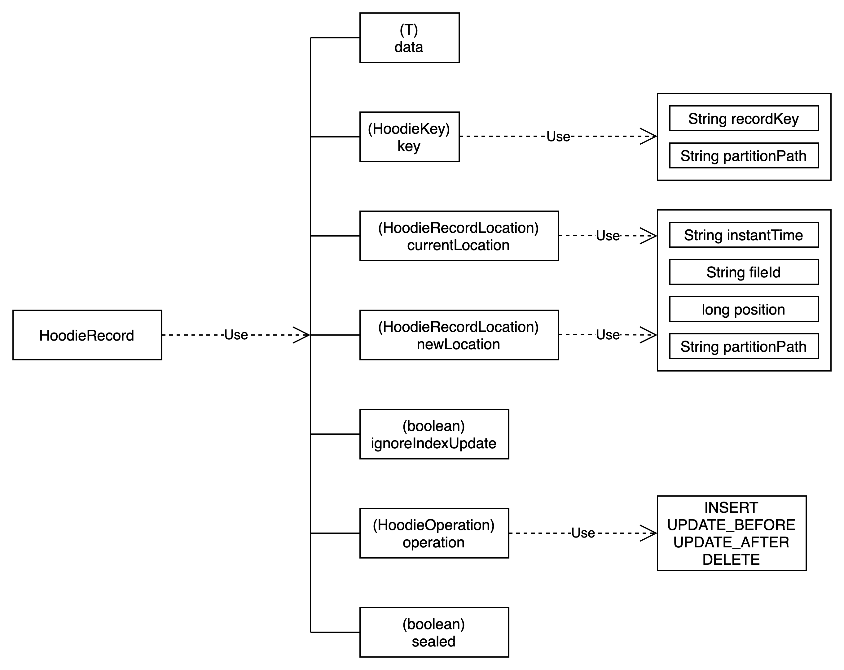 “data”字段是一个通用类型,包含记录的实际字节,也称为有效负载。通常,此属性实现 HoodieRecordPayload ,它指导引擎如何将旧记录与新记录合并。从 0.13.0 版本开始,引入了新的实验接口 HoodieRecordMerger 来替代 HoodieRecordPayload 并作为统一的合并 API。