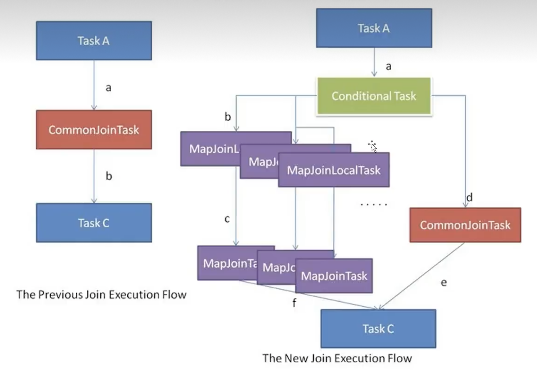 但有些Common Join任务所需的表大小,在SQL的编译阶段是未知的(例如对子查询进行join操作),所以这种Common Join任务是否转换成Map Join任务在编译阶段是无法确定的。