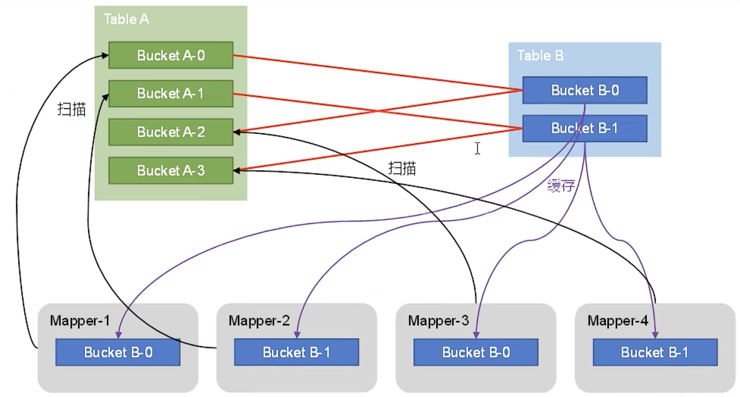 简称SMB Map Join,是Bucket Map Join。SMB Map Join要求:参与join的表均为分桶表,且须保证分桶内的数据是有序的,且分桶字段、排序字段和关联字段都为相同字段,且其中一张表的分桶数量是另外一张表分桶数量的整数倍。