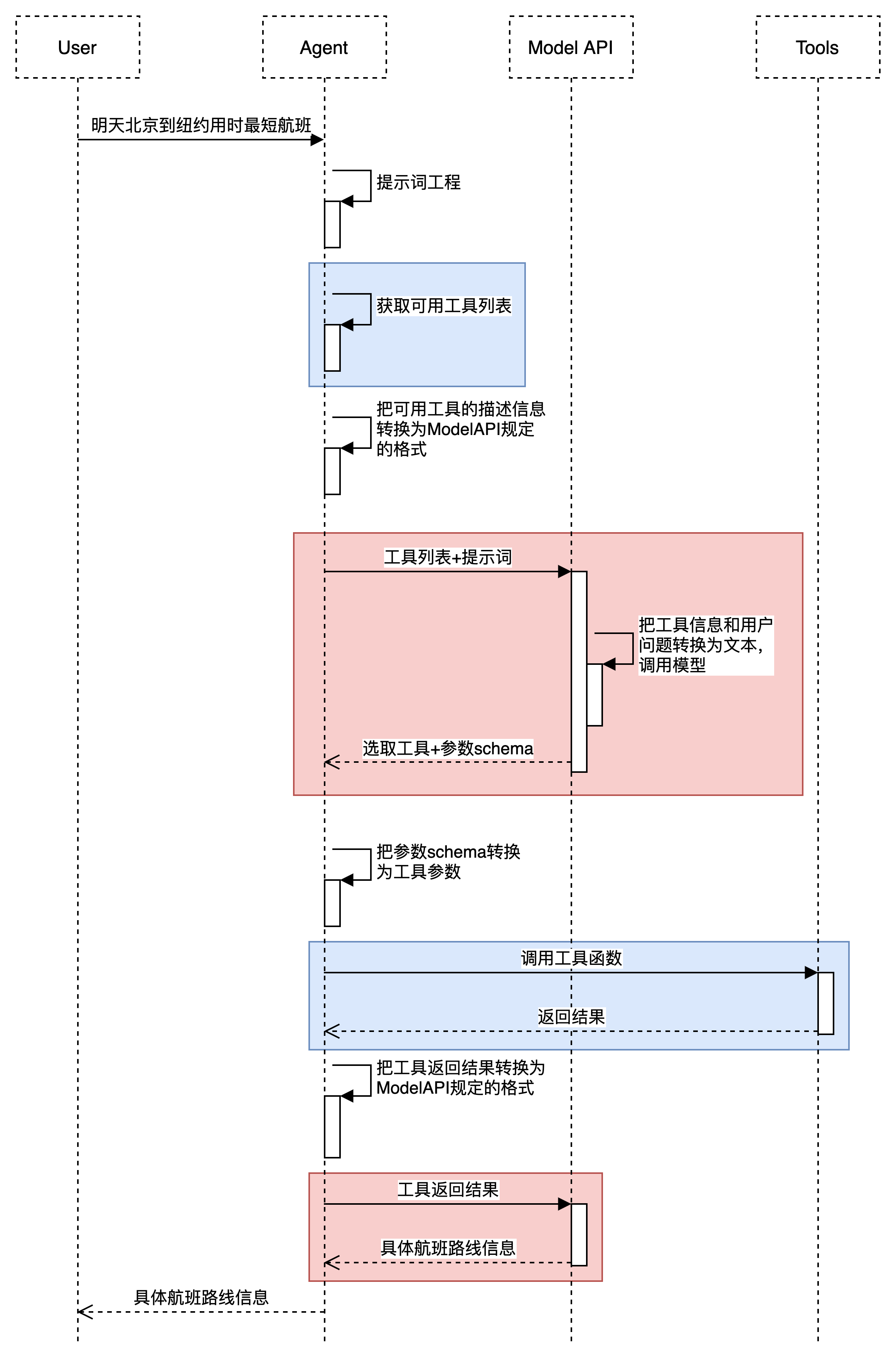 下面是一个简单的AI请求过程,涉及Function Call和MCP请求。